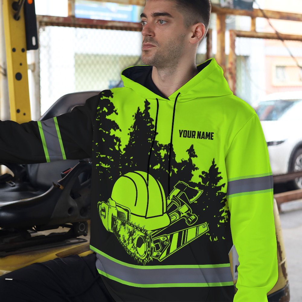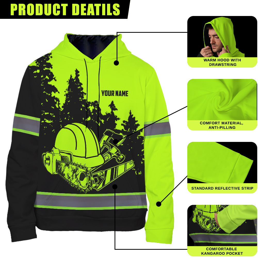 High Visibility Hoodie Black And Green Custom Name Safety Shirts For Workers, Runners, Cyclists, Trucker, Operator, Patriotic