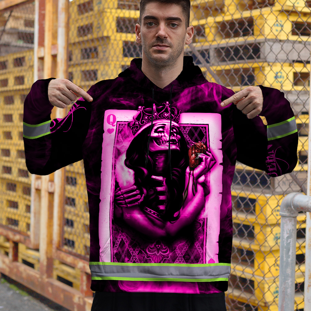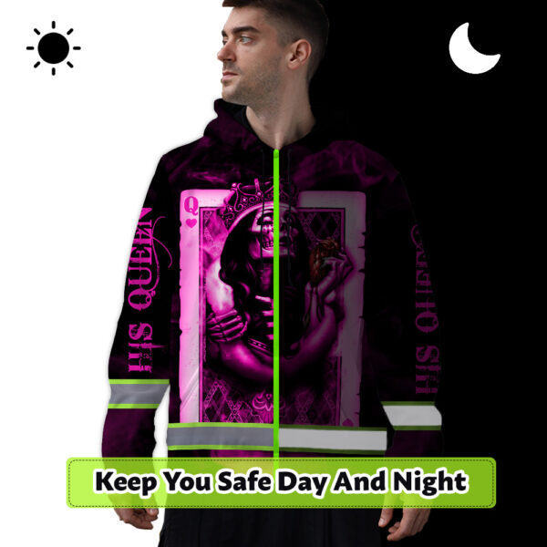 Hi Vis Hoodie Reflective Sugar Skull Pink His Queen Custom Name Safety Workwear For Skull Lovers Key Features