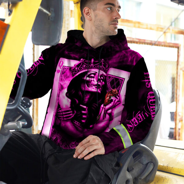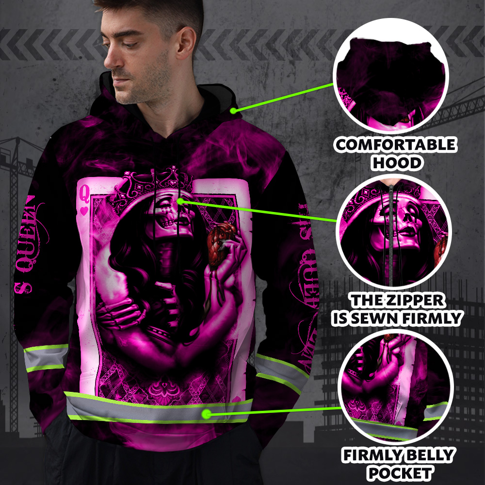 Hi Vis Hoodie Reflective Sugar Skull Pink His Queen Custom Name Safety Workwear For Skull Lovers Description