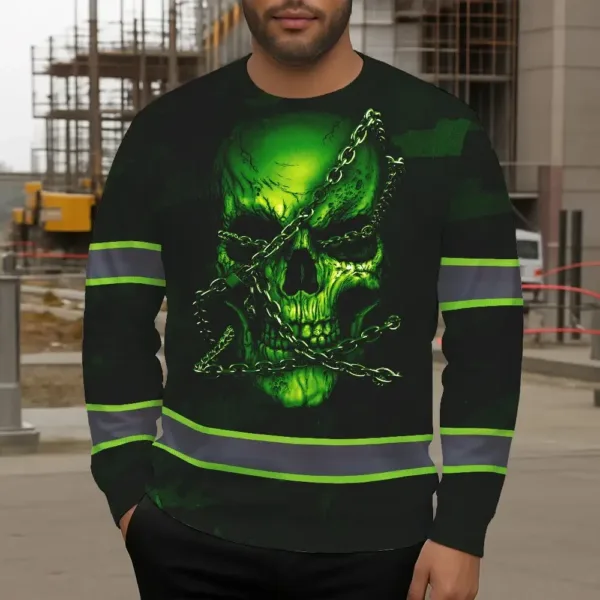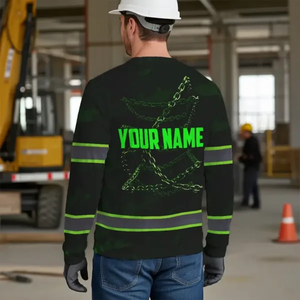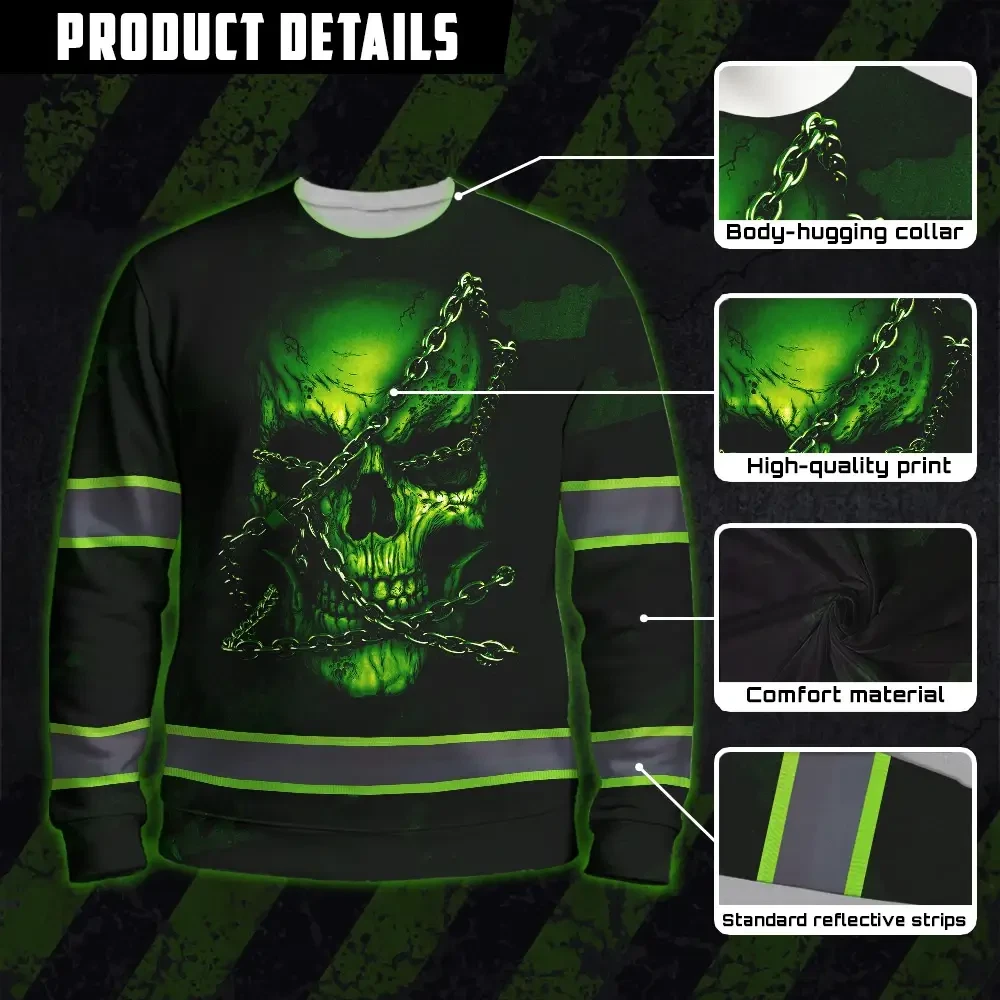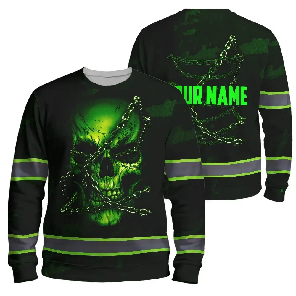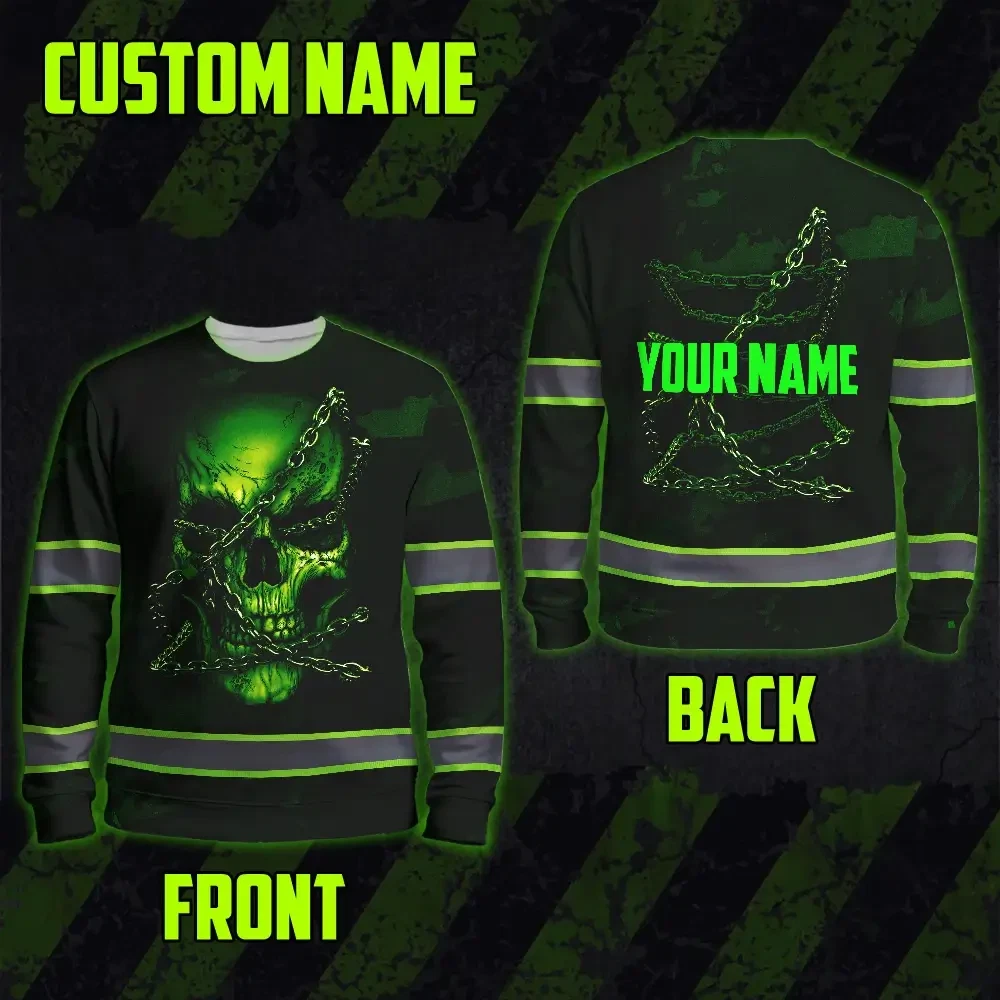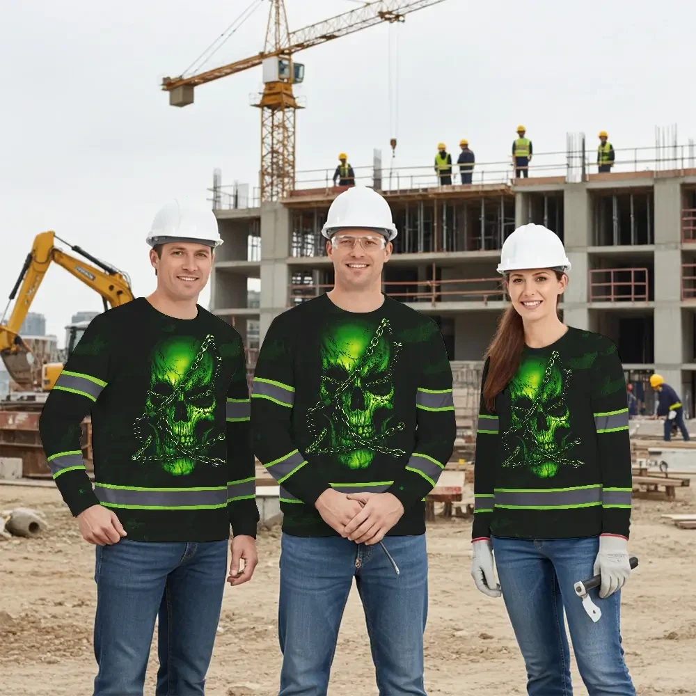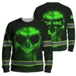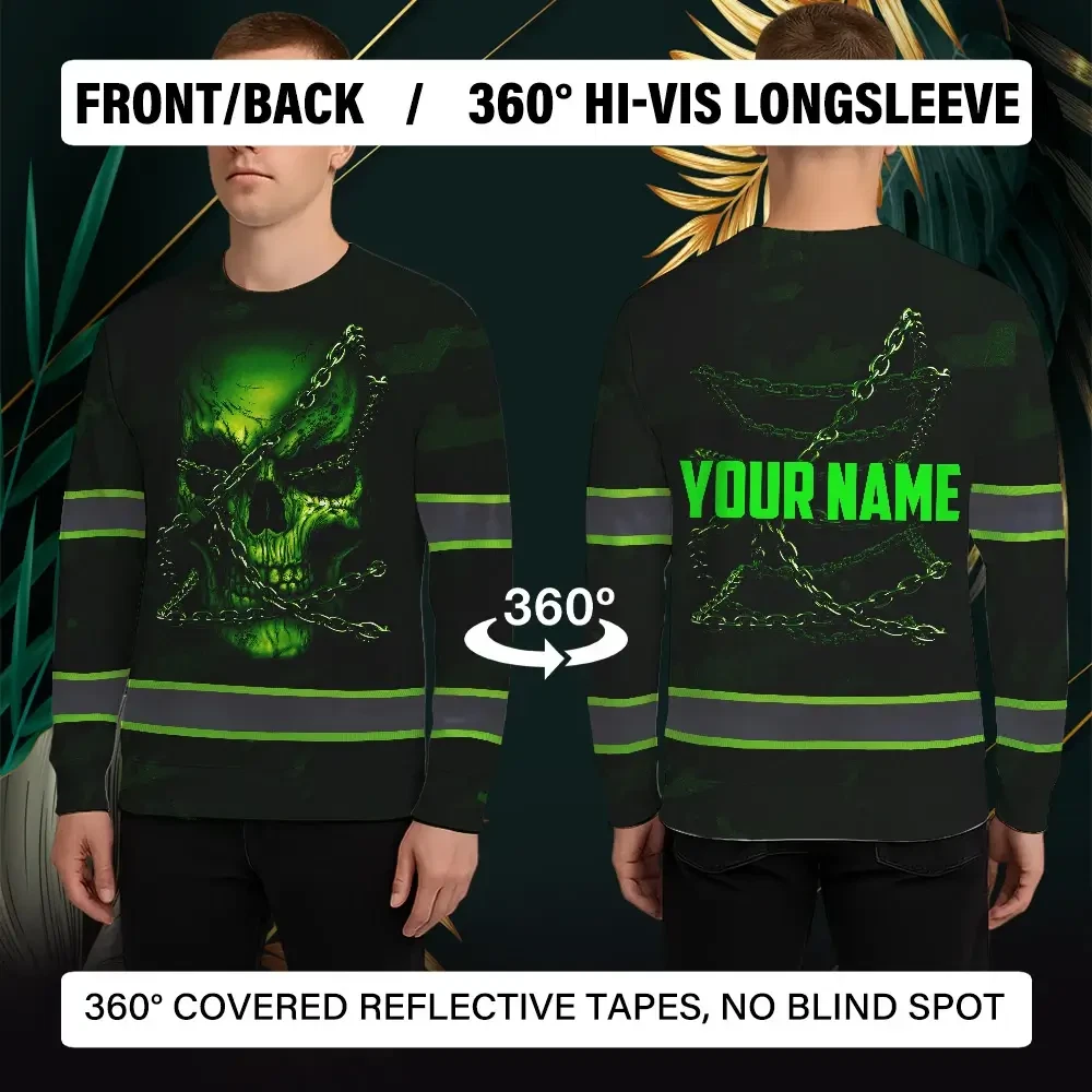 High Visibility Long Sleeve Skull USA Flag Green Neon Custom Name Safety Workwear
