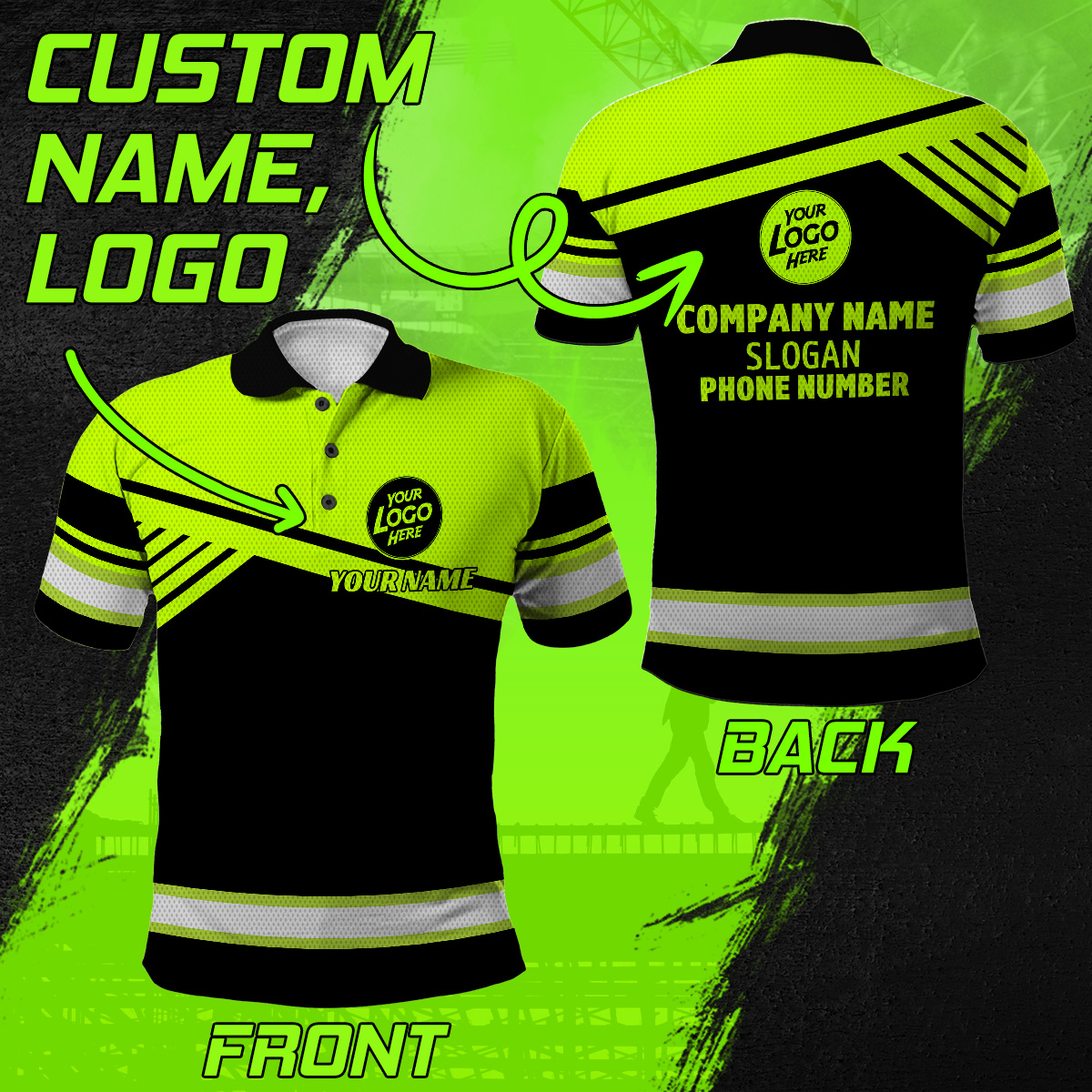 High Visibility Polo Shirt Black And Green Custom Name Site Safe Apparel