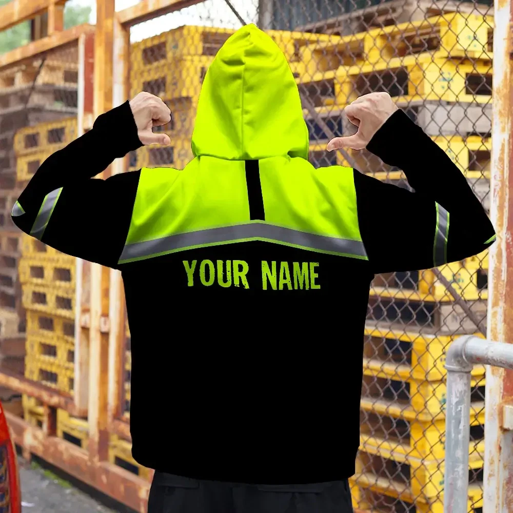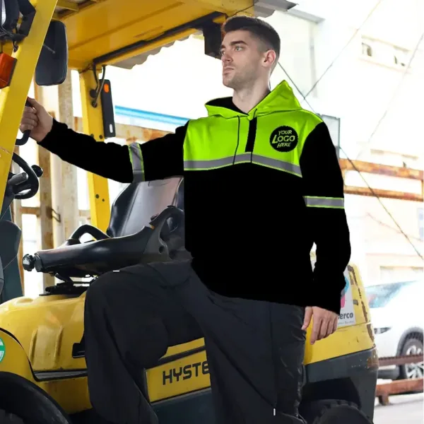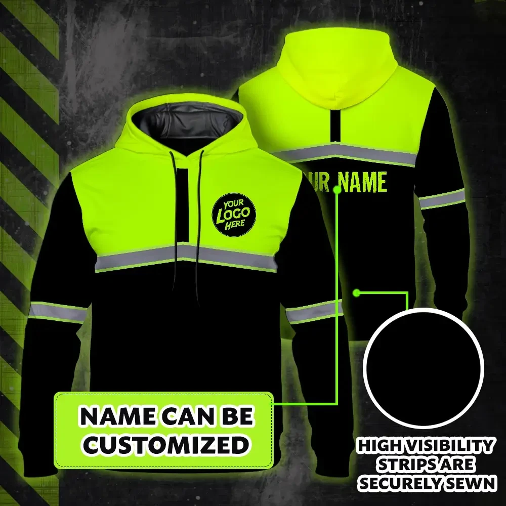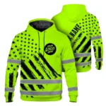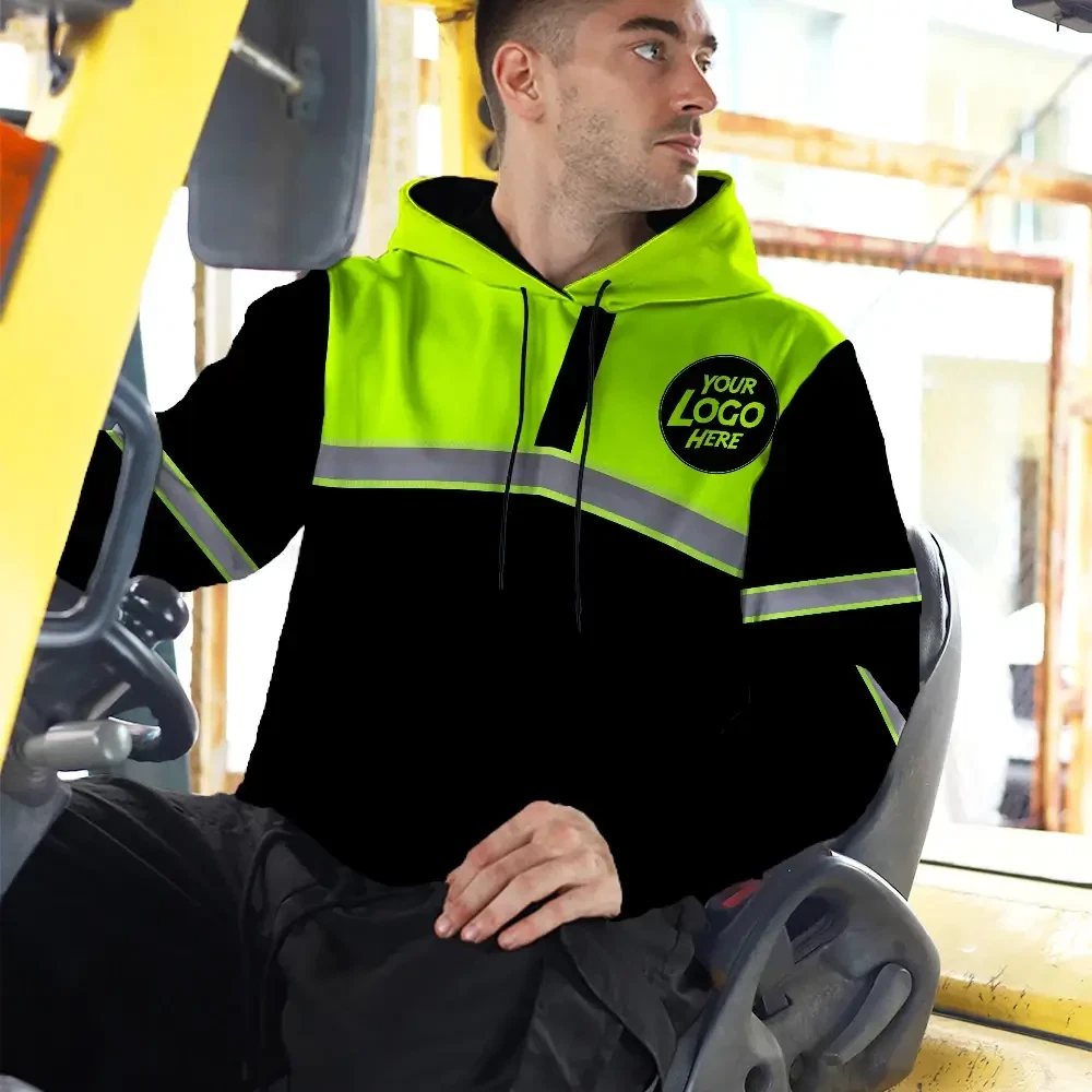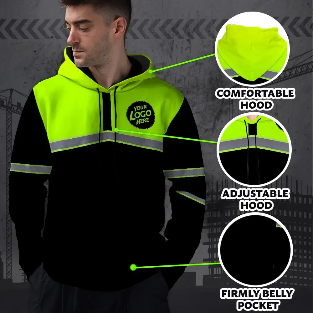 High Visibility Reflective Green And Black Custom Name And Logo Hoodie Safety Workwear Unisex