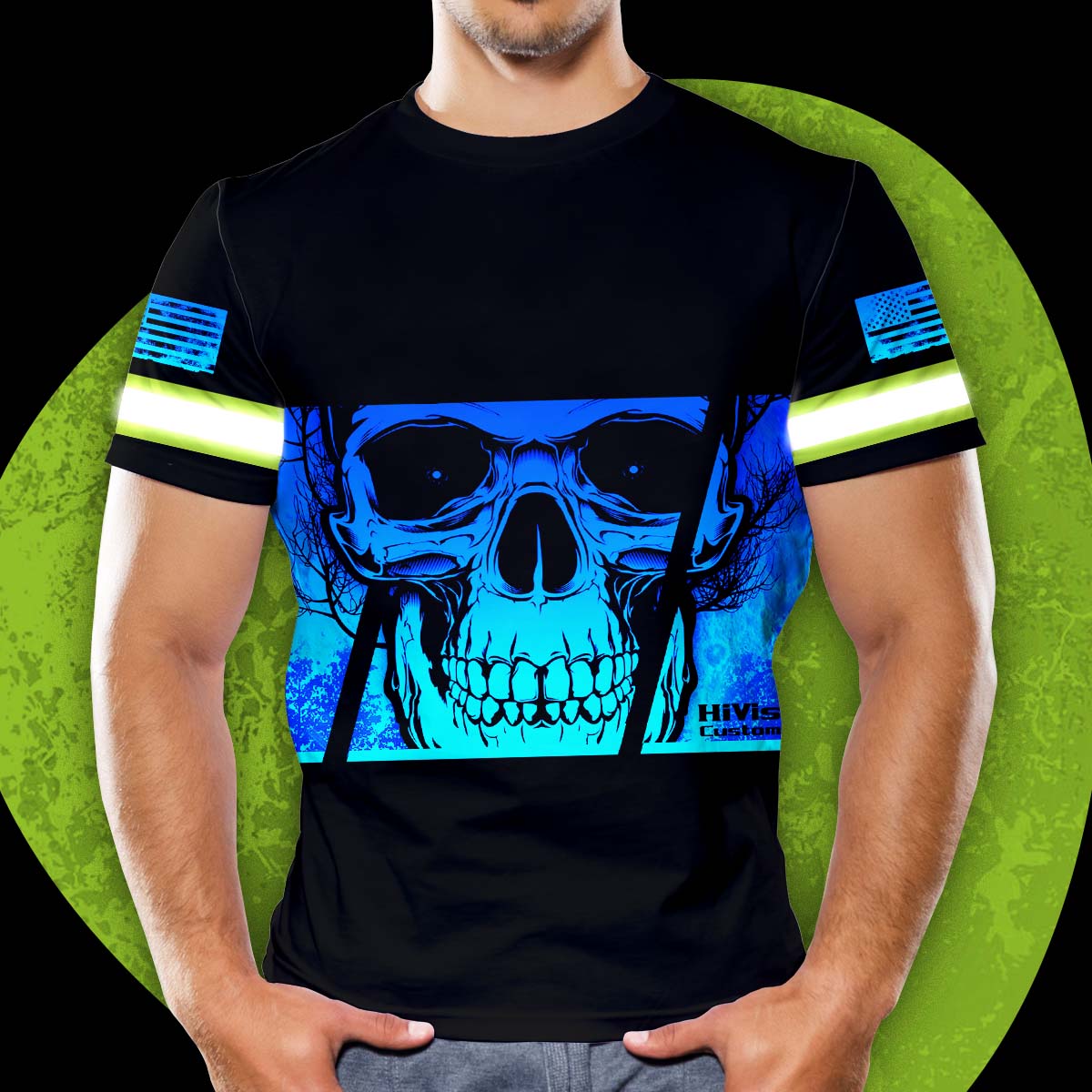 High Visibility Shirt Reflective Bold Skull Workwear Custom Name