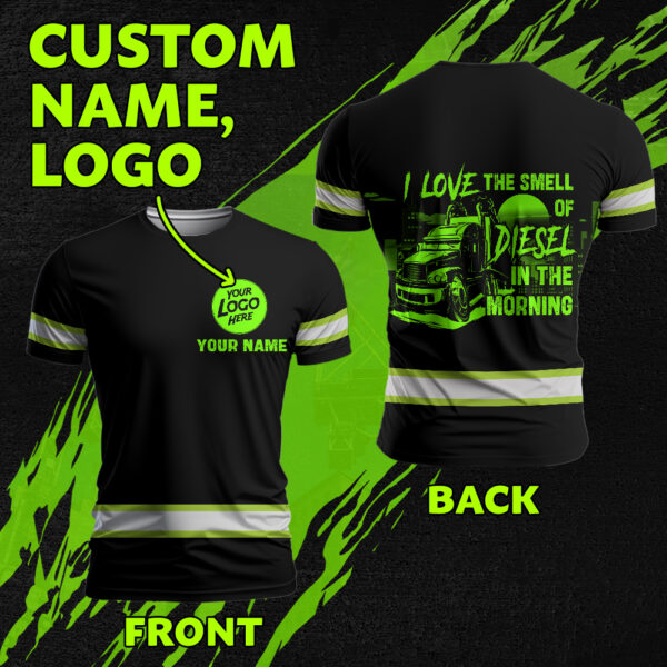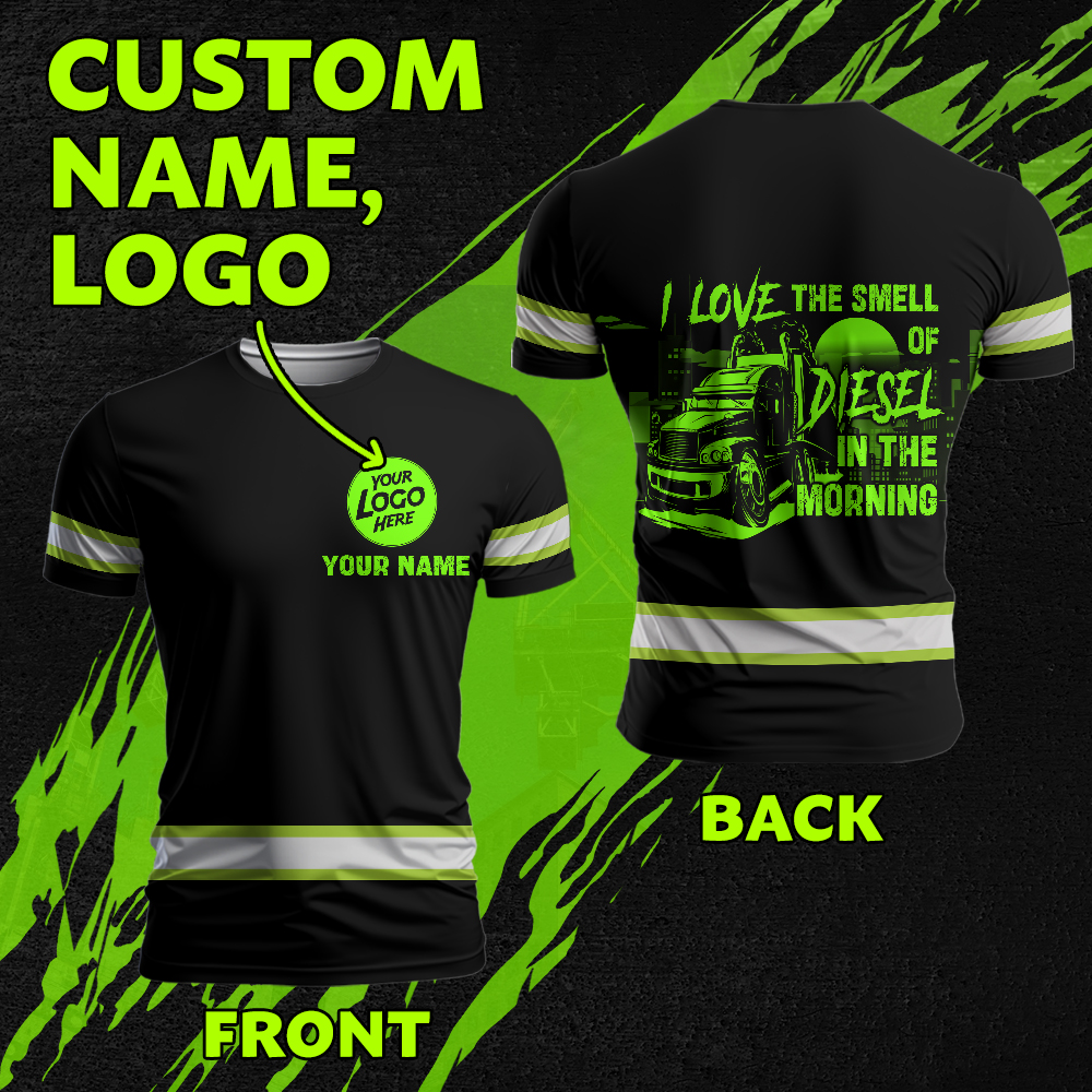 High Visibility Shirt Reflective I Love The Smell Of Diesel In The Morning Custom Name, Logo, Hi Vis Shirts Funny