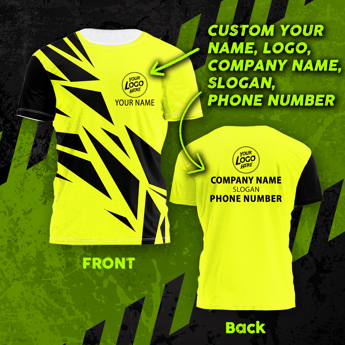 High Visibility Shirt Yellow Black Pattern Custom Name Logo Company Safety Workwear Reflective Short Sleeve Tshirt For Construction Worker