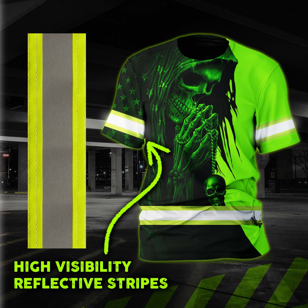 Select options This product has multiple variants. The options may be chosen on the product pageHi Vis Shirt Reflective Skull With US Flag Custom Name Safety Workwear For Skull Lover