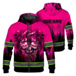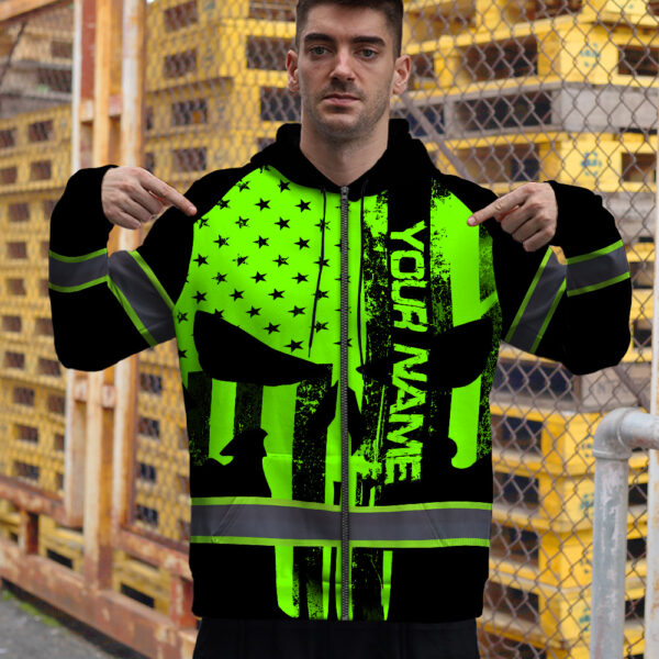 High Visibility Zip Hoodie Green Neon Skull America Flag Custom Name Safety Workwear For Skull Lover