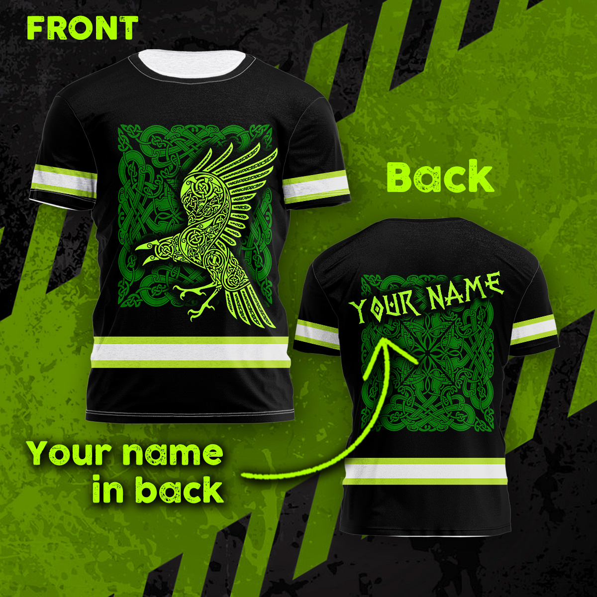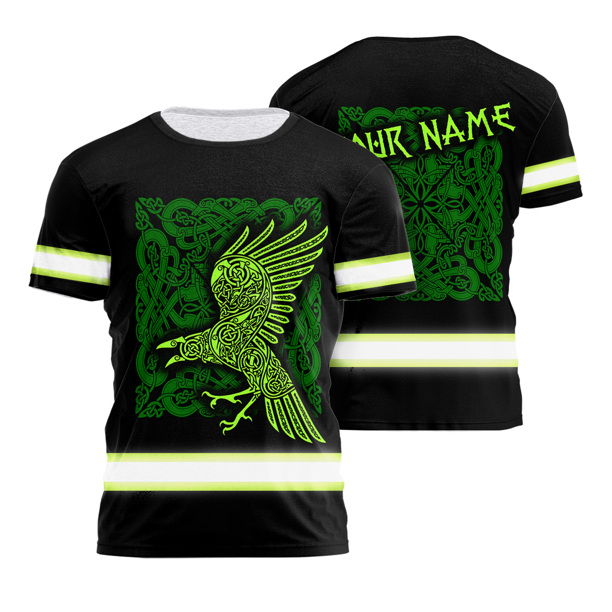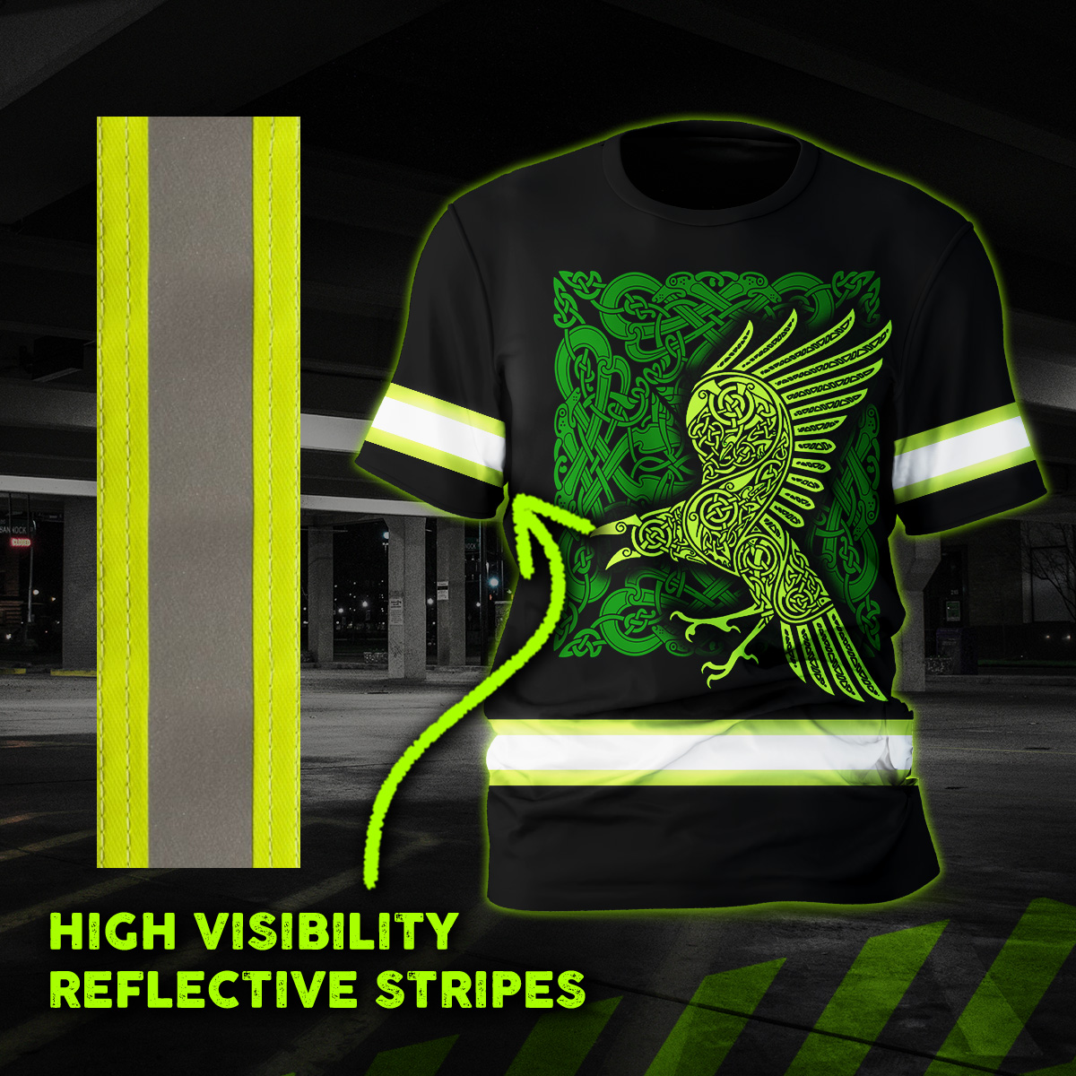 HiVis Shirt Reflective Green Neon Raven Viking Symbol Custom Name Safety Workwear