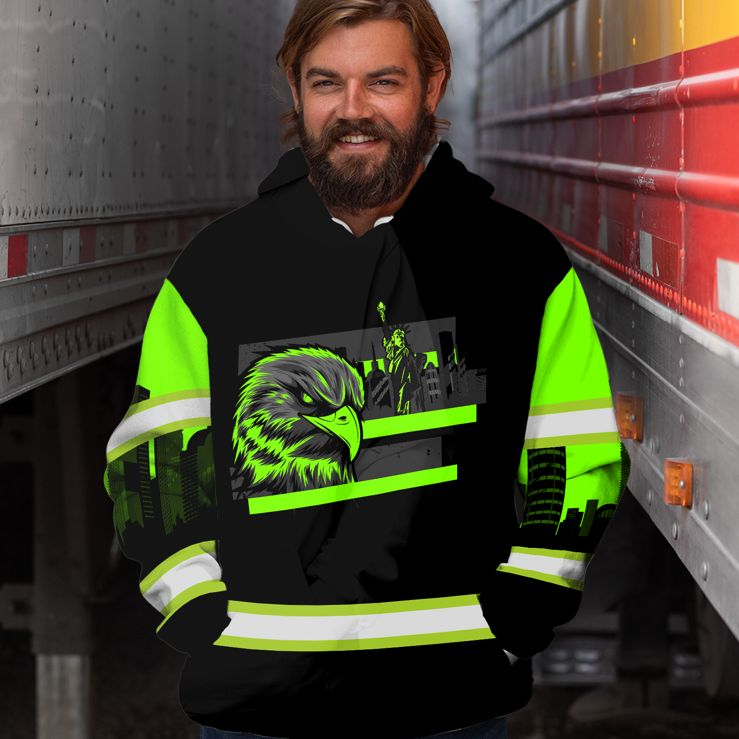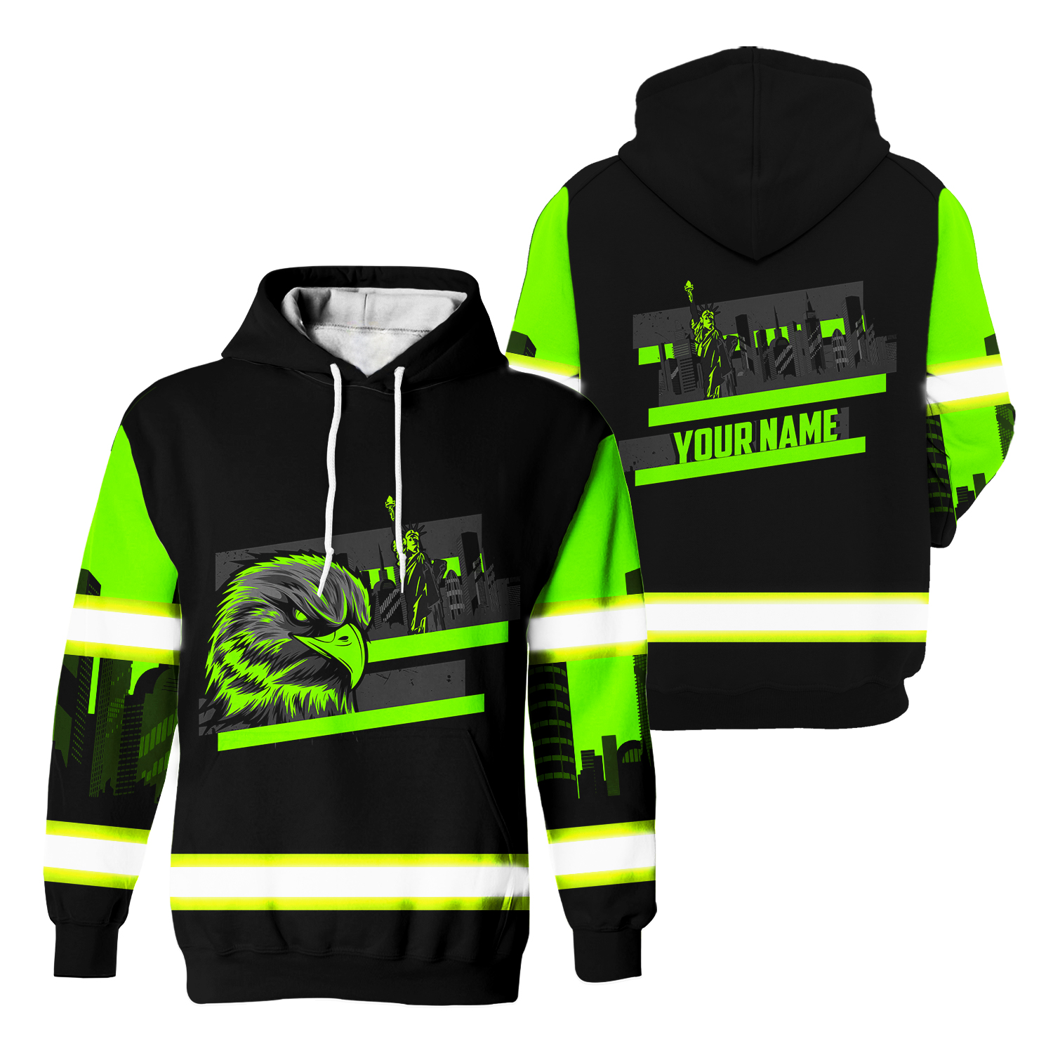 Patriotic Green Reflective Safety Hoodie Custom Name Workwear