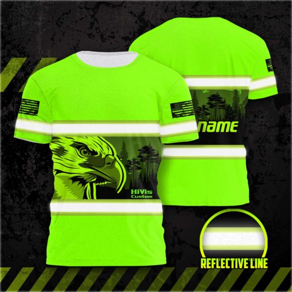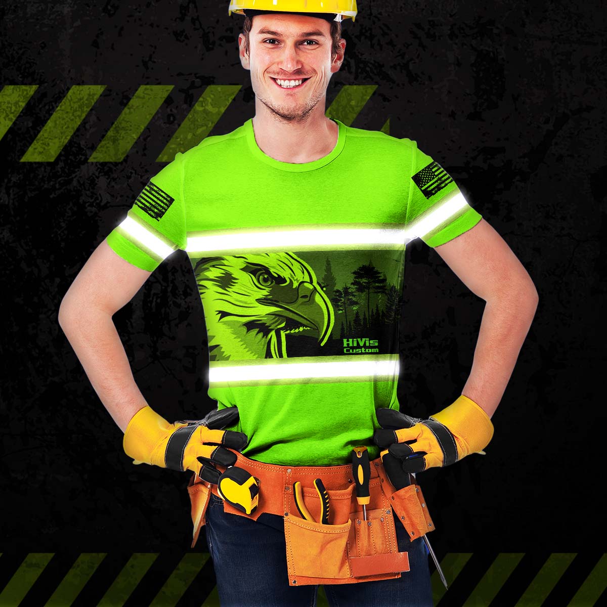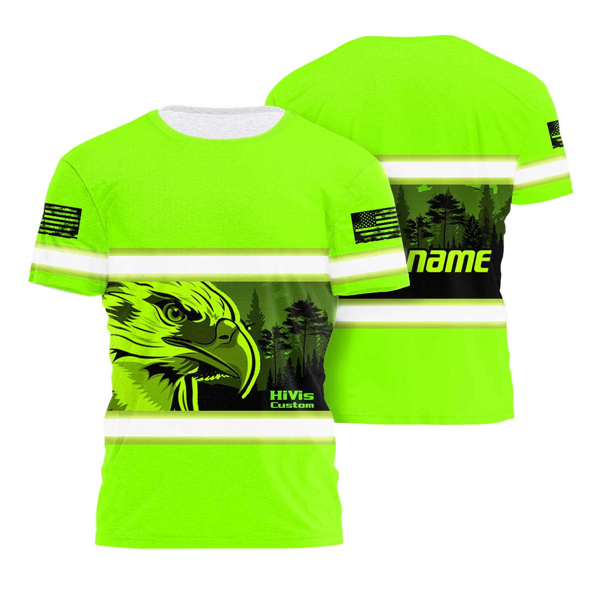 Customized Reflective Eagle Hi Vis Green Tshirt USA Flag Safety Clothing