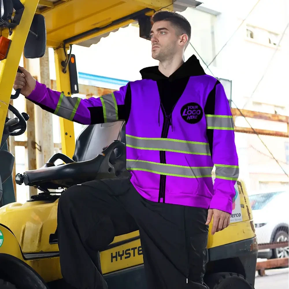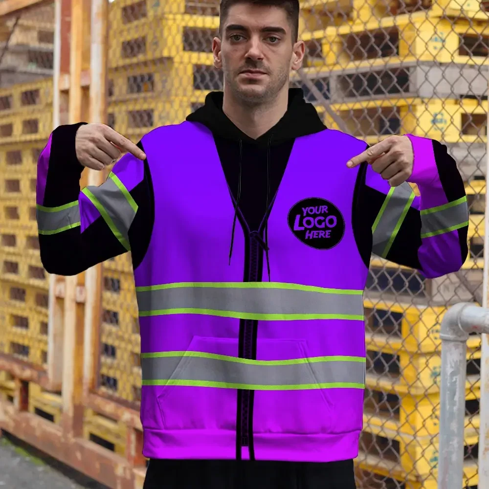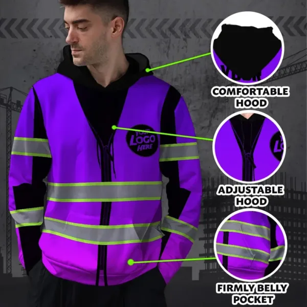 Reflective Hi Vis Hoodies - Violet Tape Custom Name And Logo Safety Workwear Unisex