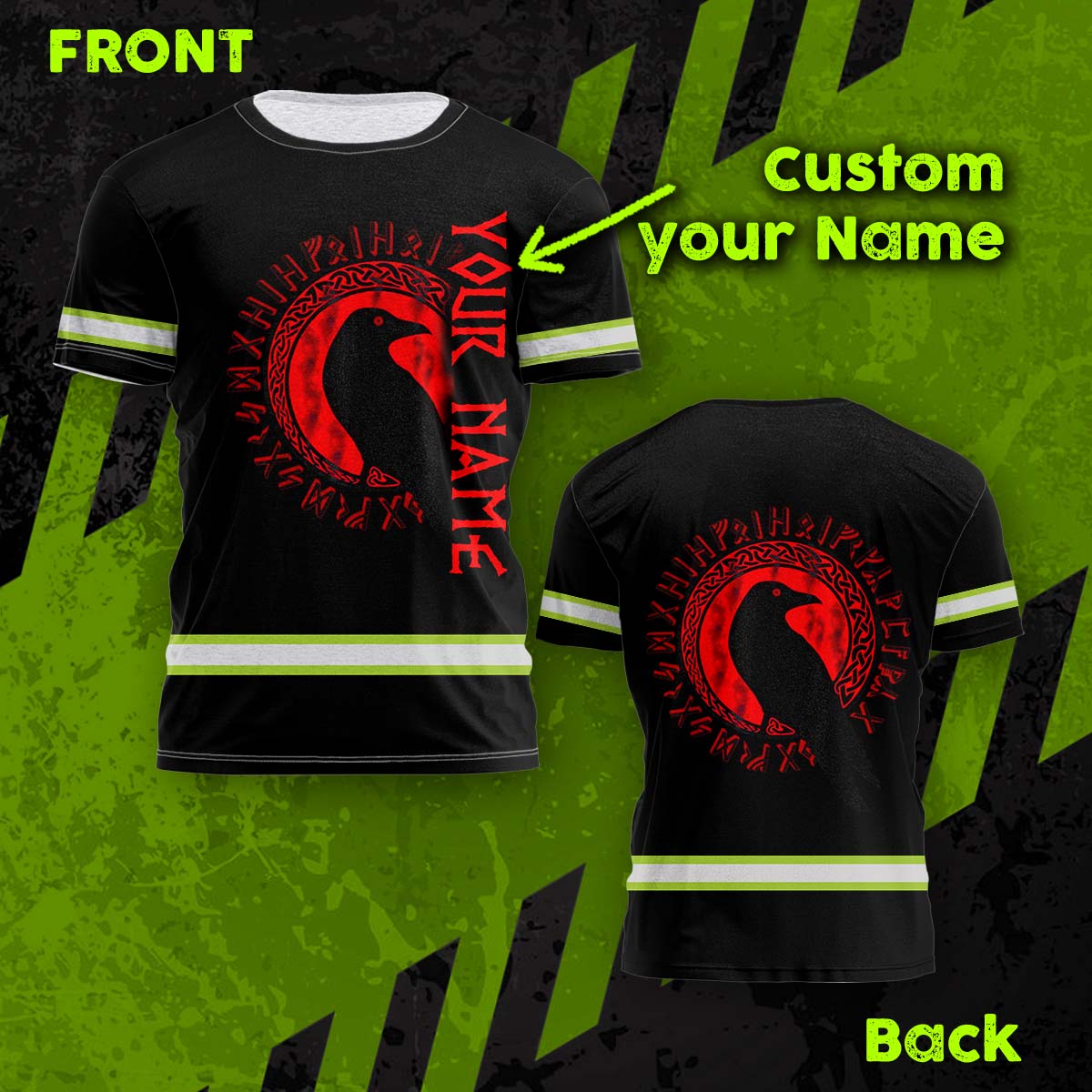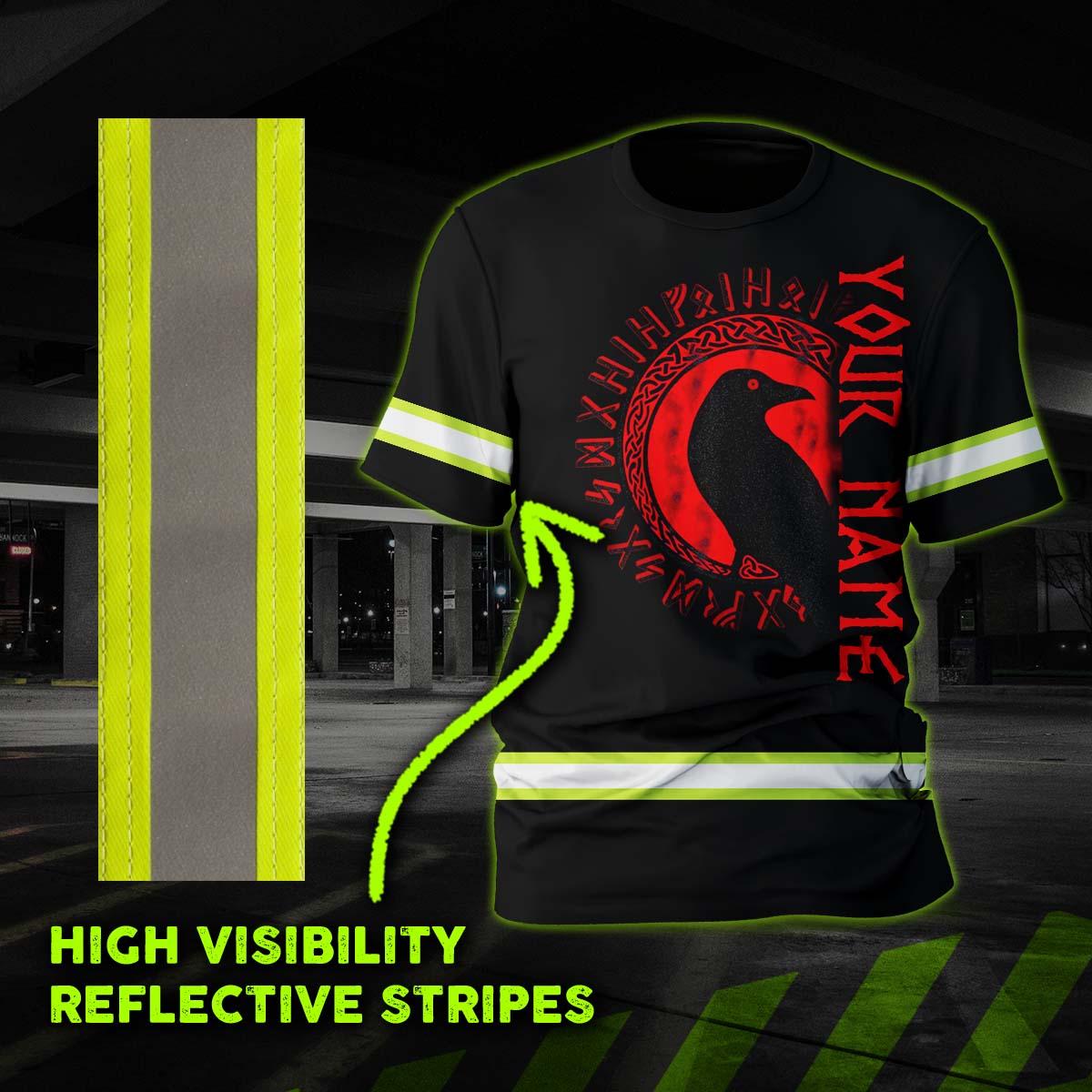 Safety Shirts Black Reflective Orange Neon Viking Raven Custom Name Safety Workwear