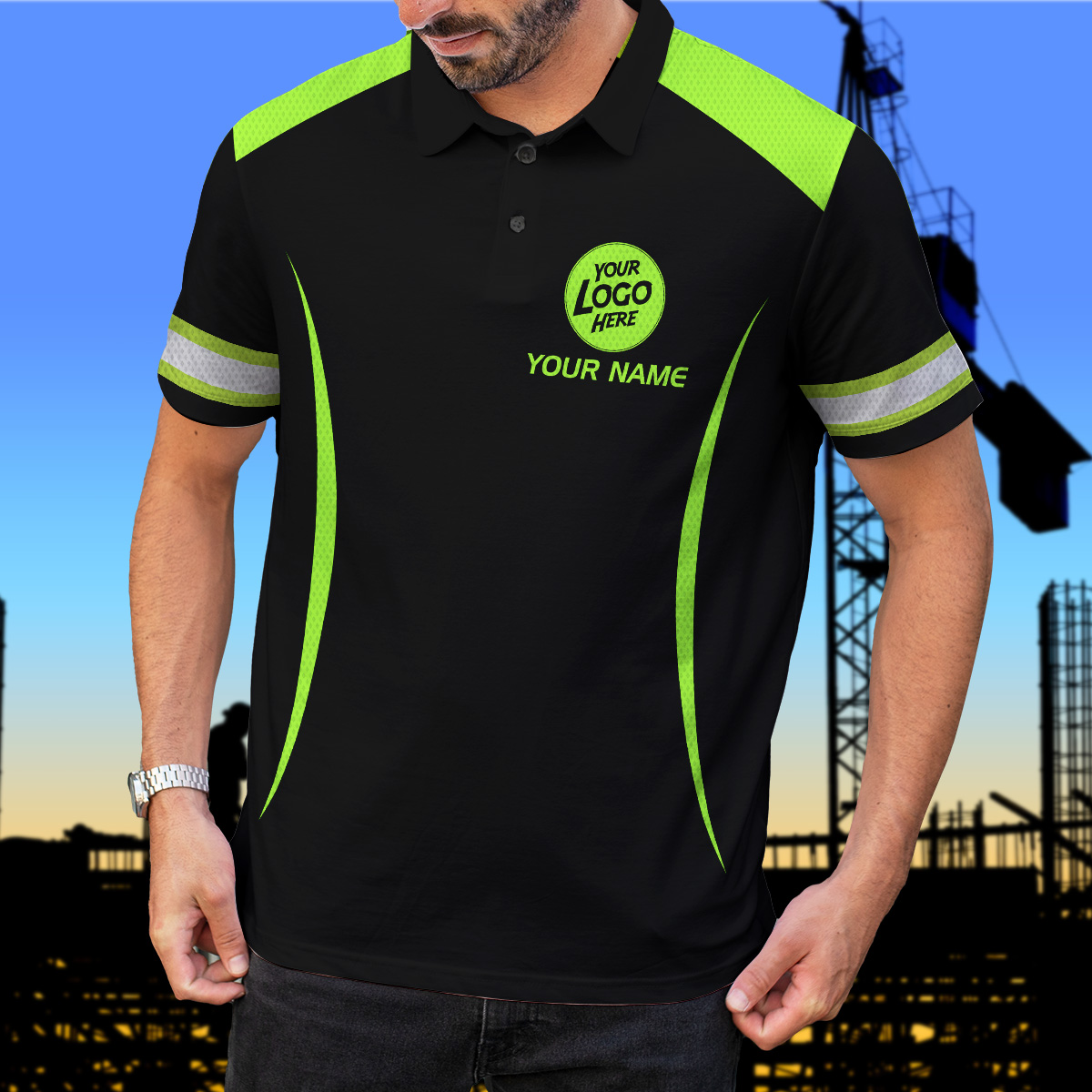 Safety Workwear Hi Vis Polo Shirts Featuring Custom Name, Logo For Construction Teams