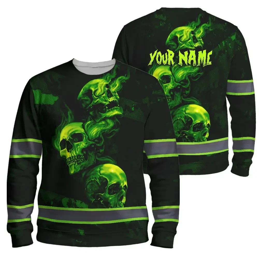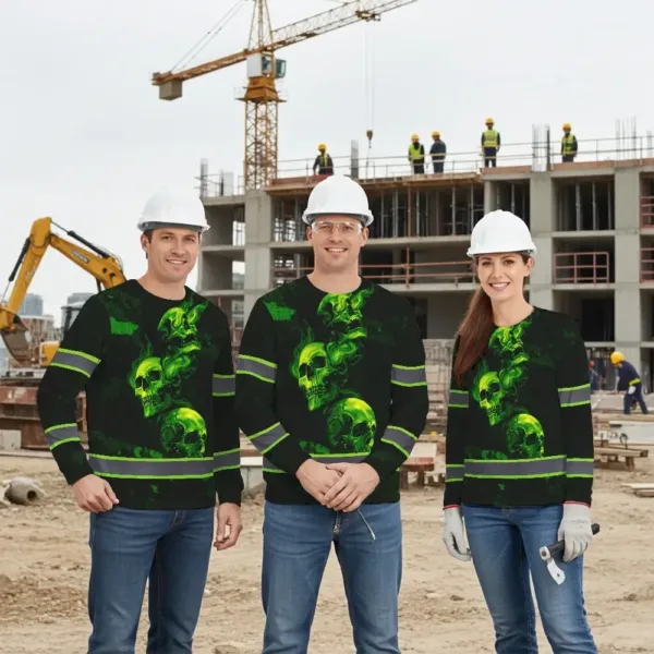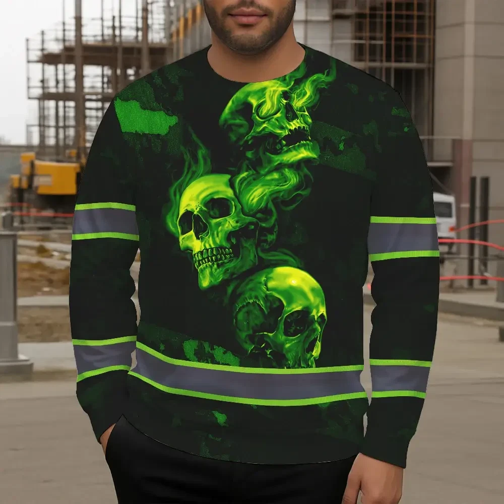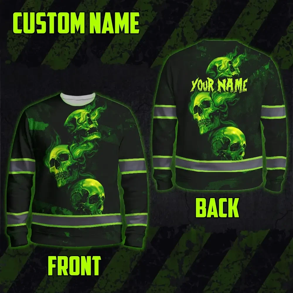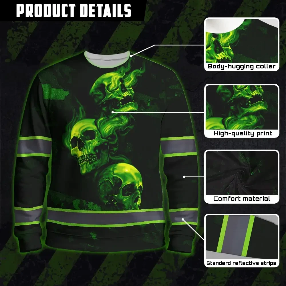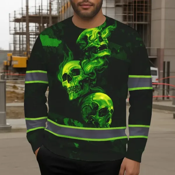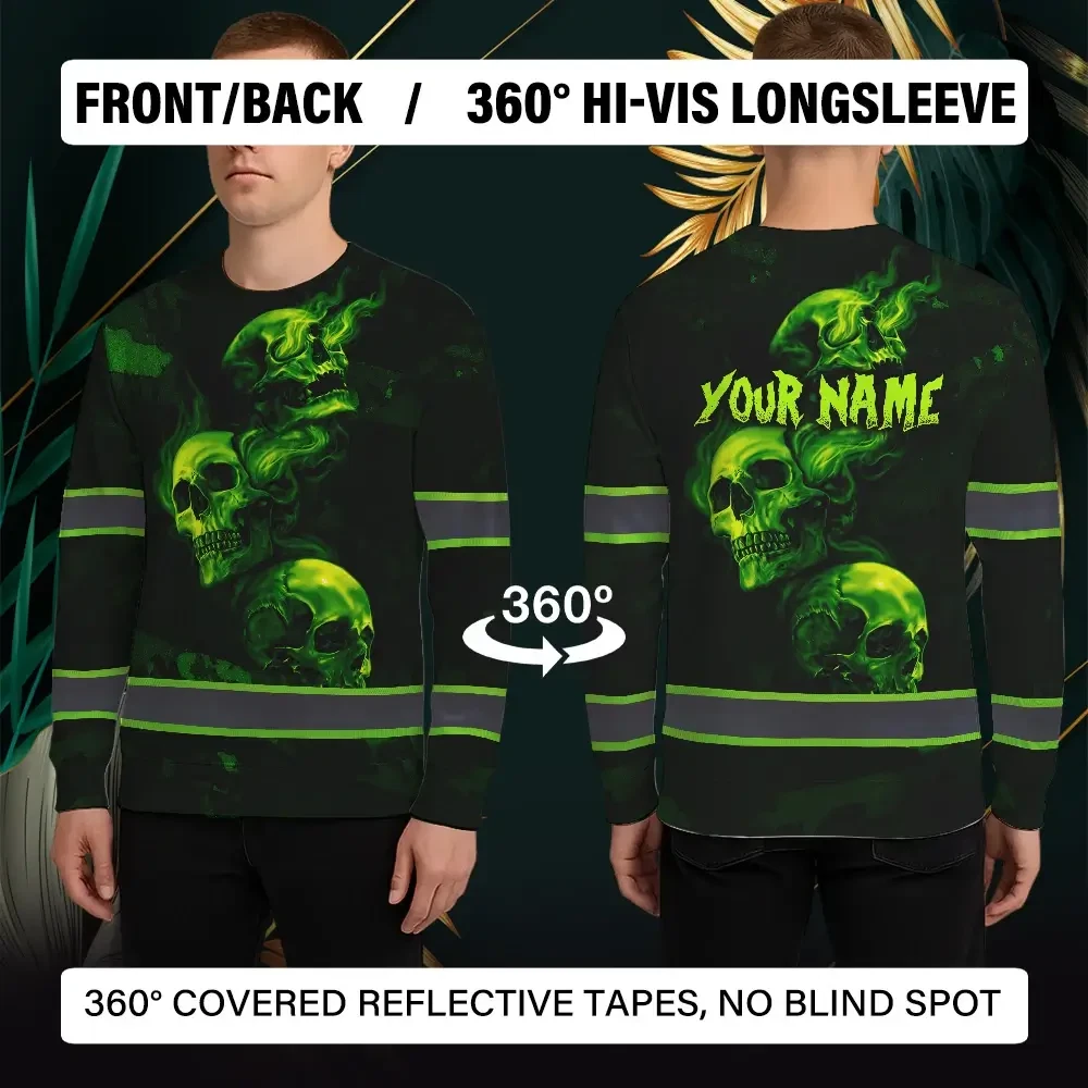 Stand Out At Work With Hi Vis Long Sleeve Shirt Featuring Green Neon Skull And Smoke Effect
