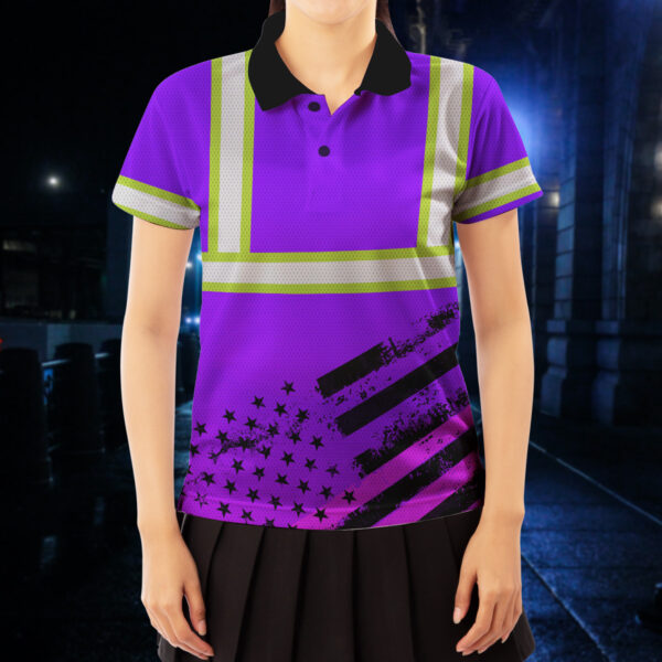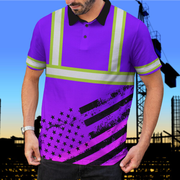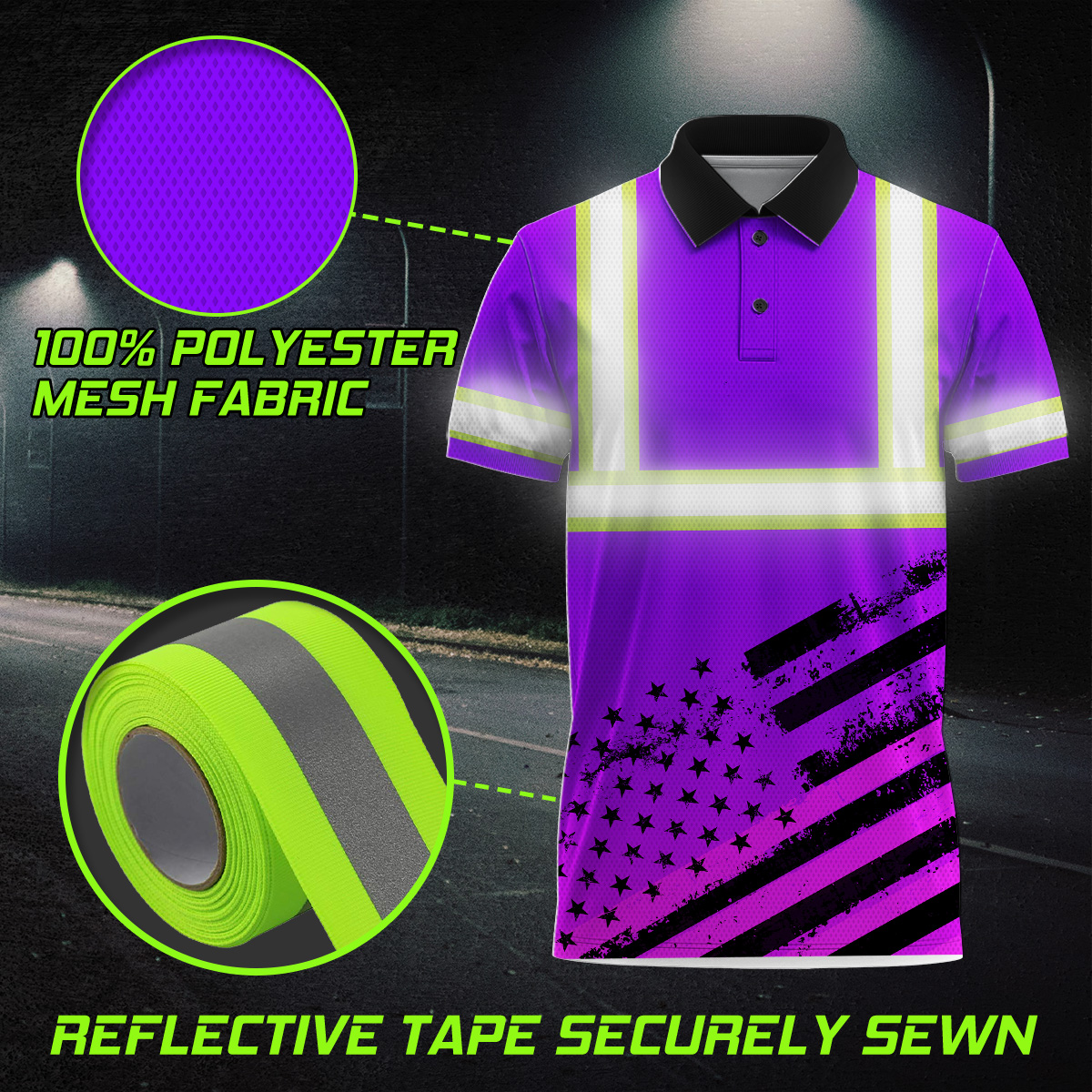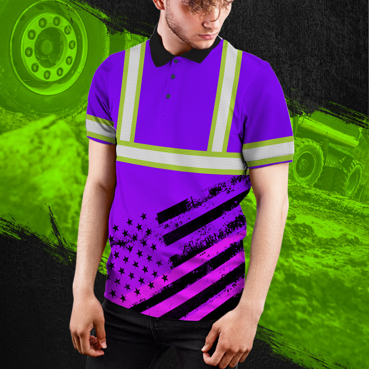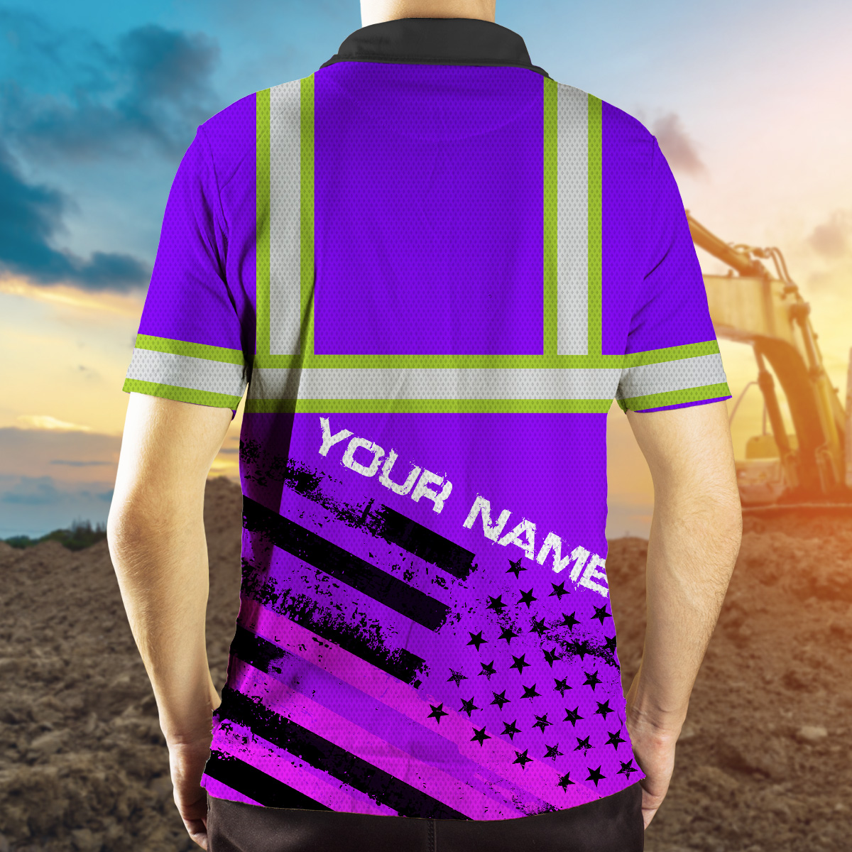Violet Neon Hi Vis Polo Shirt With USA Flag And Custom Name – Patriotic Style